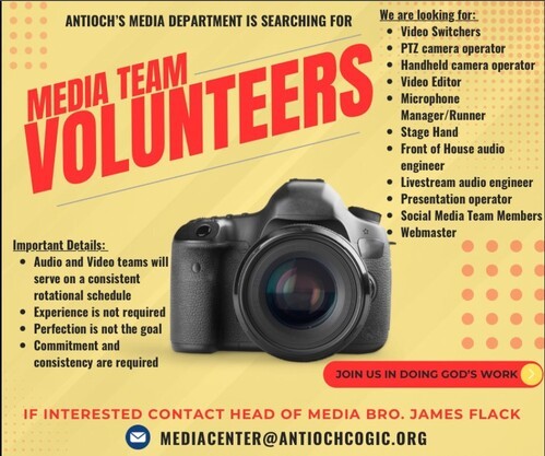 Worship service is now open for in-person worship. In addition, service is live-streamed on the Antioch App, Facebook or YouTube.